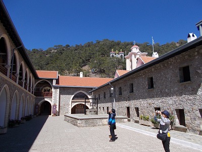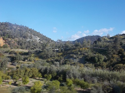 2017年春の記録 キプロスマルタ旅行の記録3日目 リマソールから島中心部のトロードス山脈に入り、北へ走り、キッコー修道院、教会群、オモドスを訪問した。 終始島中心部の山岳地帯をバスで走る1日だったが、山村はどこも過疎化が進んでいると言っていた。山岳道路は、中腹をトラバースでゆく、くねくね道で、ほぼトンネルがない(通った道では、一か所のみあった)。日本も、旧道は山ひだに沿ったくねくね道、新しくなると次々支尾根をトンネルでぶち抜き、直線コースでスピード出して走れる道になる。 道路法面工事をした壁も見かけなかった。斜度はある。雨が少ないので水が出ないからでは、という。また、ドイツで見た猟師小屋(ハンター小屋)もないが、野生動物(害獣)はほとんどいない、と言っていた。 トロードス山脈へ ![]()
