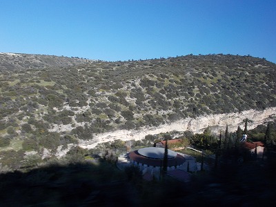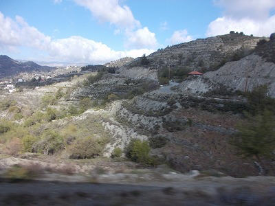 ![]() 村の名は聞き取れなかったが、このあたりはニコシアなどへ車で通える通勤圏内なので、土地買って住む人が多く、過疎ではない。ブドウ栽培の適地でもある。(オリンポス山の東北東あたり) ![]()